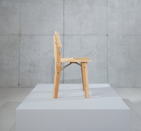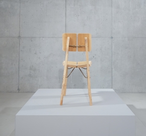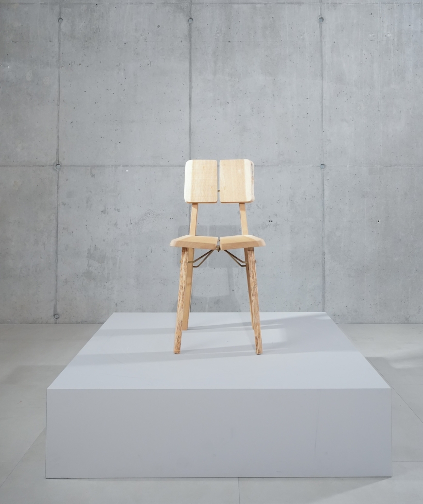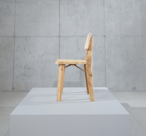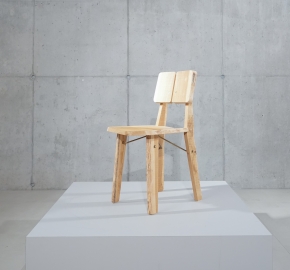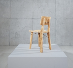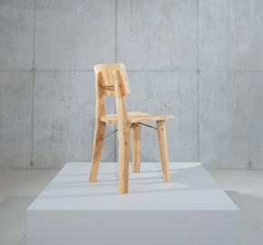 De New Tree Trunk Chair is een expressief ontwerp dat voortkomt uit de filosofie om niets te verspillen. De stoel is vervaardigd uit massief eikenhout, waarbij de natuurlijke vormen en imperfecties van het hout behouden blijven. De rugleuning bestaat uit twee planken met een open spleet in het midden, wat niet alleen een esthetisch element is, maar ook bijdraagt aan het zitcomfort. De achterpoten zijn gemaakt van gebogen houten stukken, geselecteerd op hun natuurlijke kromming, vergelijkbaar met traditionele technieken zoals het maken van bootspanten of dakspanten. Elke stoel is uniek en met de hand vervaardigd, wat resulteert in een ambachtelijk en karaktervol meubelstuk.