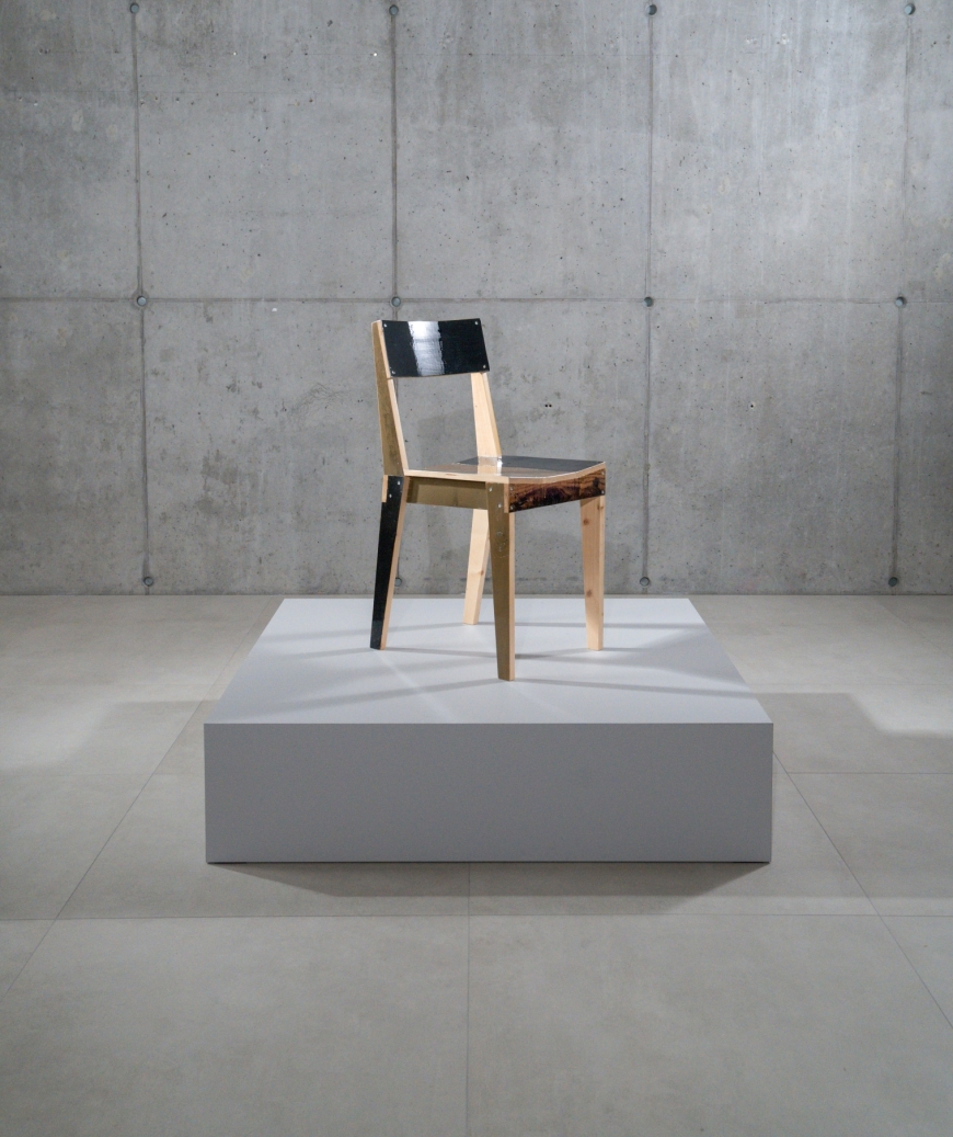 De sloophouten stoel is vrijwel identiek aan de eiken stoel. Na het rechte en oncomfortabele prototype heeft Piet Hein Eek de rug van de stoel rond gemaakt door deze te lamineren met twee stukken hout van elk 4 of 5 mm dik. De houten lagen worden in een pers samengeperst om de gewenste vorm te verkrijgen. De verhoudingen van de stoel waren al geoptimaliseerd, dus alles wat hij deed, was het toevoegen van de rondingen. Plotseling werd de stoel heel comfortabel. Het is een van zijn best verkochte stoelen en heeft gediend als het model voor vrijwel al zijn latere stoelen.