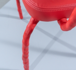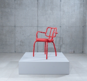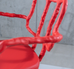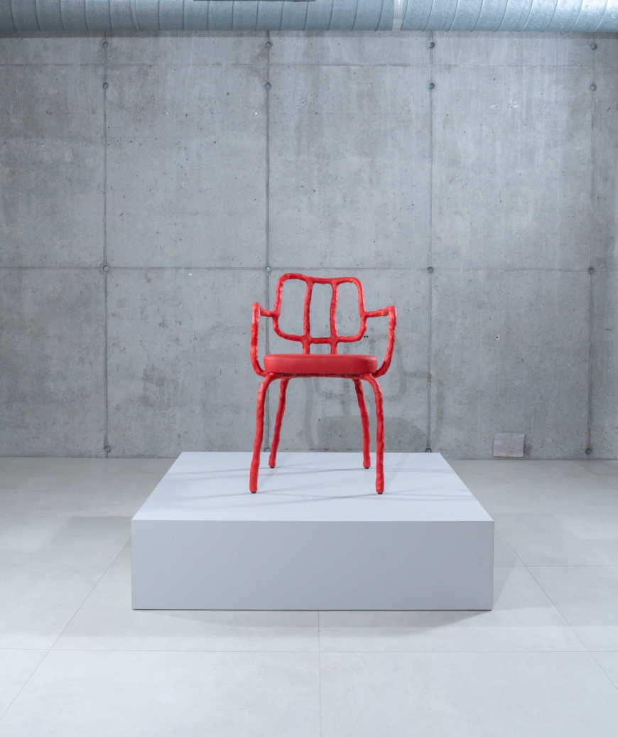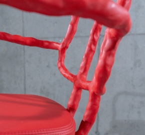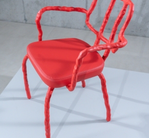 De Maarten Baas Plain Clay Dining Chair Arm rood is onderdeel van de Plain Clay Furniture lijn. De Plain Clay furniture lijn is de gebruiksvriendelijke versie van de oorspronkelijke Clay furniture lijn welke Maarten Baas beide ontwierp. De Plain Clay furniture lijn wordt net als Clay furniture gemaakt door middel van een metalen frame dat bedekt wordt. Bij Plain Clay furniture is dit materiaal sterker en daardoor geschikt voor openbaar gebruik. Zo werd het restaurant van het Groninger Museum ingericht met Plain Clay furniture. De bekleding is van leder.