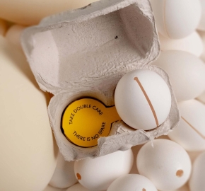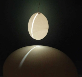 De Reality hanglamp is ontworpen door Theo Möller voor Ingo Maurer (2023) en is precies wat de naam zegt: extreem letterlijk. Het “armatuur” is namelijk een echt kippenei, waarin een fijne geometrische snede is gemaakt. Binnenin zit een minimale LED die een zacht, bijna symbolisch licht geeft. Het ontwerp draait niet om lichtopbrengst, maar om idee en poëzie: een alledaags object transformeren tot een fragiel designstatement. De lamp hangt aan een dunne koperen draad (tot ca. 5 meter), waardoor hij bijna lijkt te zweven in de ruimte.
