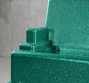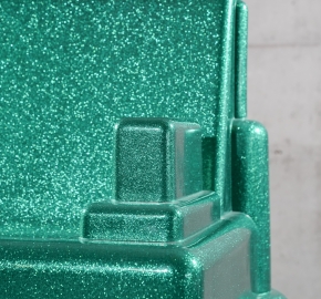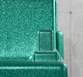Verstevigd polyester en glasvezel, voorzien van een iriserende laklaag.