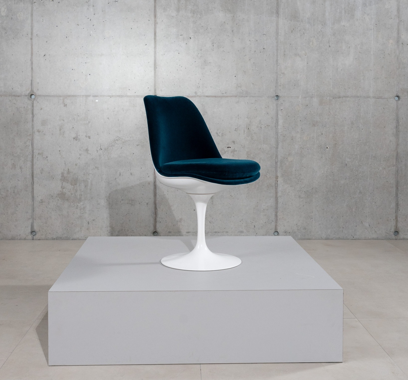De Tulip Side Chair is ontworpen door Eero Saarinen als onderdeel van zijn „Pedestal Collection” voor Knoll, waarin hij bewust het “woud van poten onder tafels en stoelen” wilde elimineren.