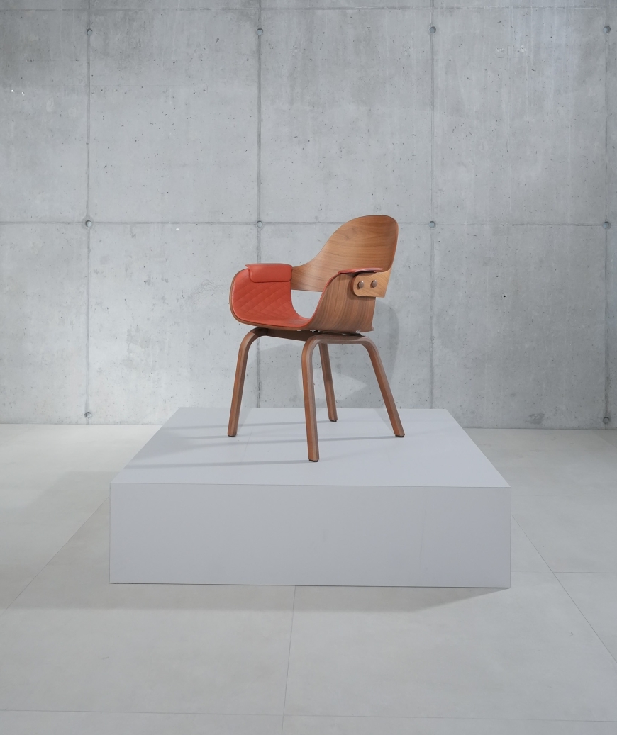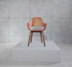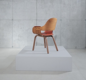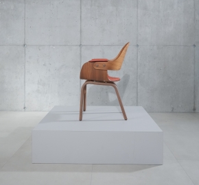 Zitschaal en rugleuning: gebogen multiplex met walnootfineer