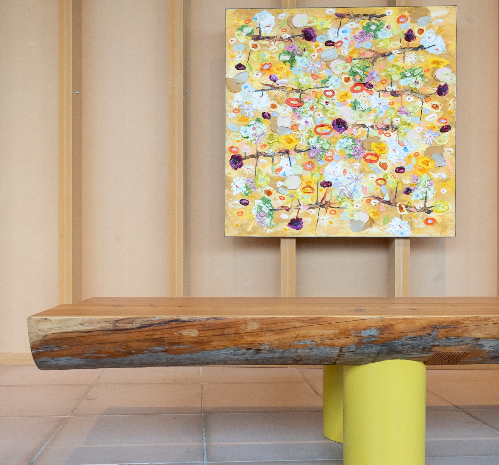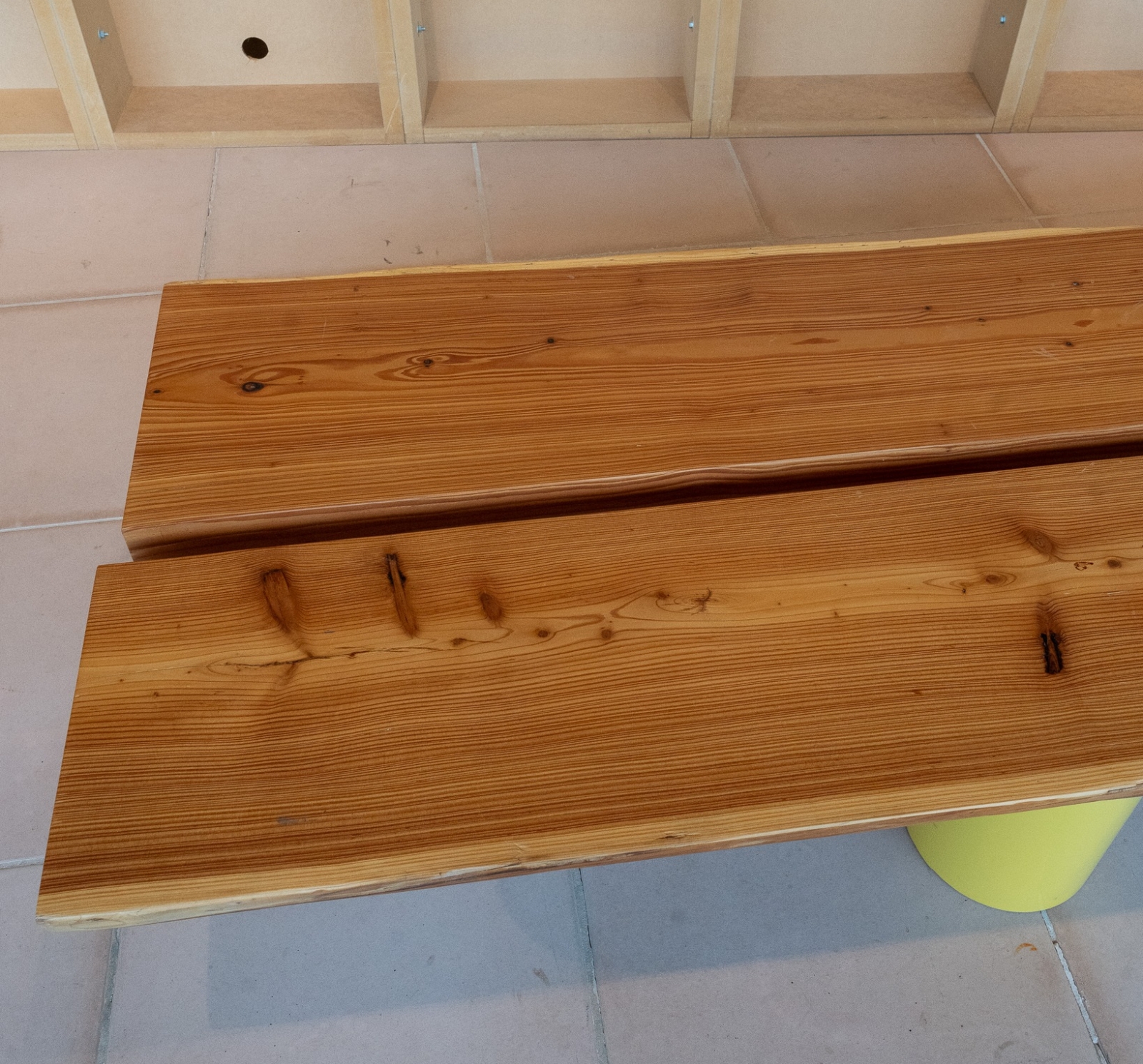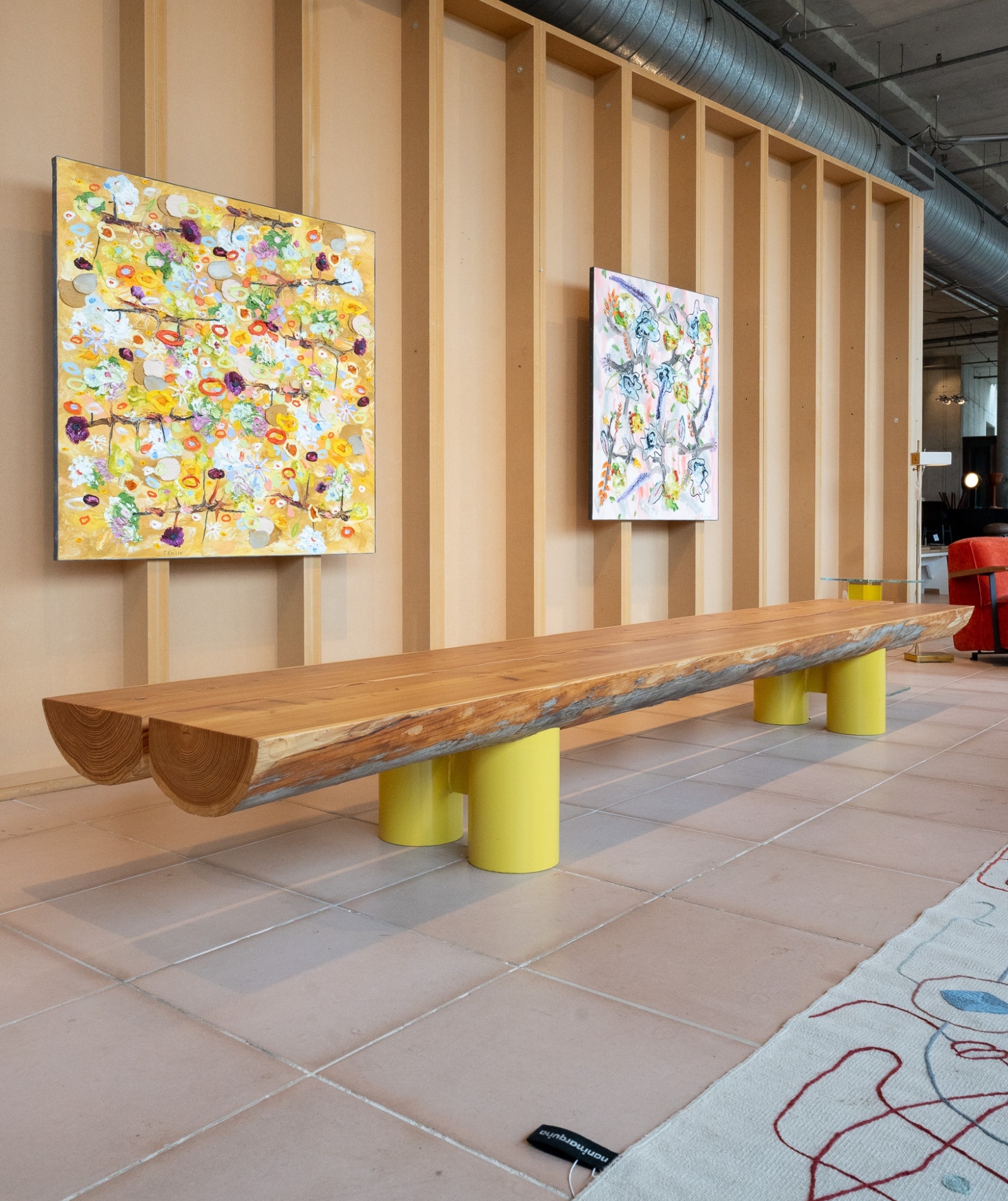 De Side Table Jacobs is een eigen ontwerp van VOS. Met zijn royale lengte van bijna vier meter is dit geen subtiele bijzettafel maar een architectonisch element in de ruimte. De combinatie van het ruwe hout en de heldere onderstellen geeft het meubel een eigentijdse uitstraling zonder het natuurlijke karakter te verliezen.