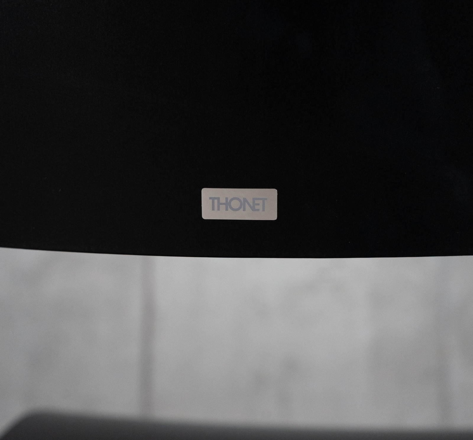 De S 243 is ontworpen door Frank Rettenbacher voor Thonet. Het ontwerp is strak, minimalistisch en functioneel: de stoel combineert een slank stalen frame met een zitting en rug van gevormd hout, wat resulteert in een luchtige, visueel lichte stoel die tegelijk stevig is.