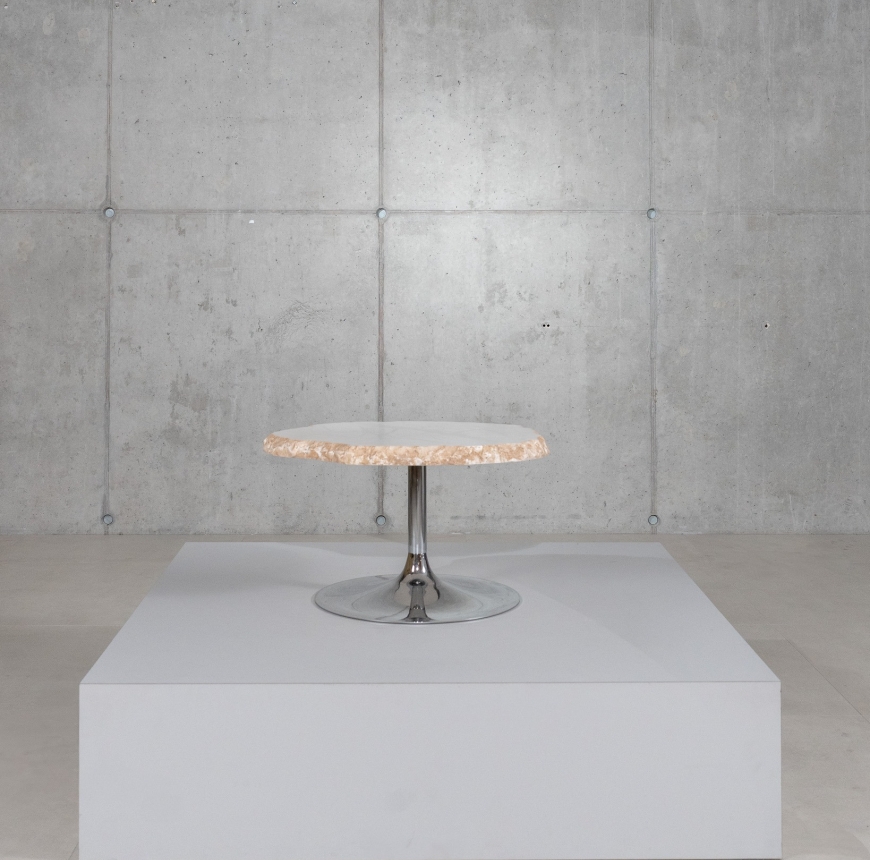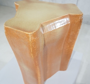 Stool Model 5 - H30 dark brown cream. De Model 5 Kruk is een ontwerp van de Nederlandse ontwerper Floris Wubben. Geïnspireerd door de robuuste architectuur van verdedigingswerken, combineert deze kruk handmatige interventie met mechanische extrusie om een stoer en functioneel ontwerp te creëren.