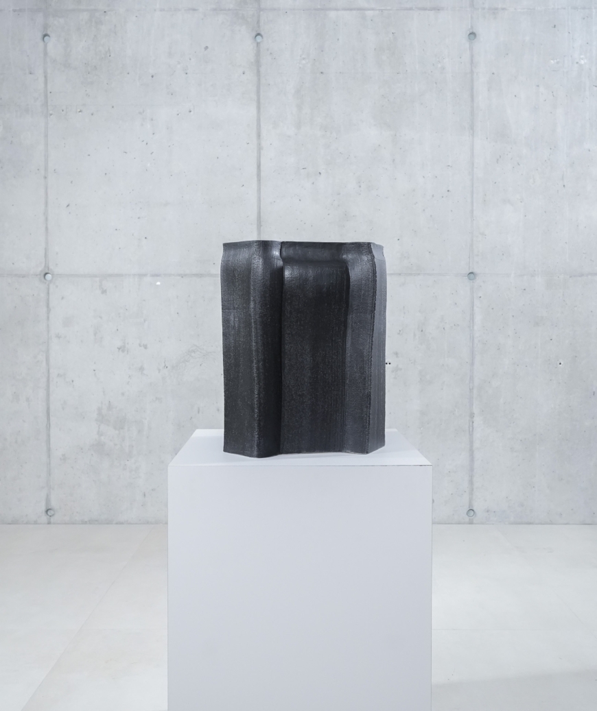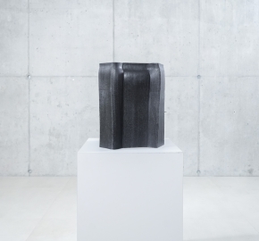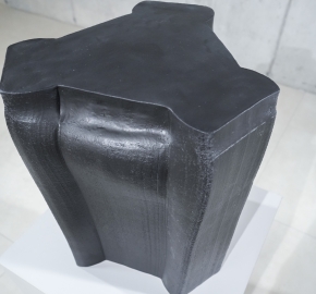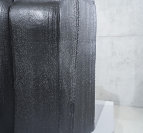 Stool Model 5 - L20 matte black. De Model 5 Kruk is een ontwerp van de Nederlandse ontwerper Floris Wubben. Geïnspireerd door de robuuste architectuur van verdedigingswerken, combineert deze kruk handmatige interventie met mechanische extrusie om een stoer en functioneel ontwerp te creëren.