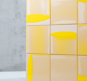 Deze op zichzelf staande objecten bevrijden keramische tegels van hun gebruikelijke, functionele rol en maken ze tot kleurrijke, zelfstandige elementen. Door gebruik te maken van een handmatige schilder- en glazuurmethode worden verouderde collecties omgevormd tot op maat gemaakte series van hardware, die een vleugje kleur toevoegen aan elk kantoor of elk huisinterieur.