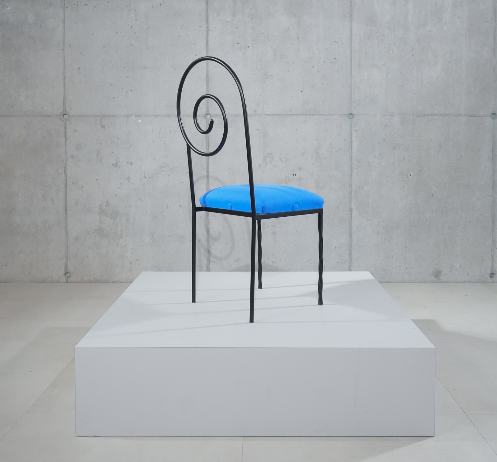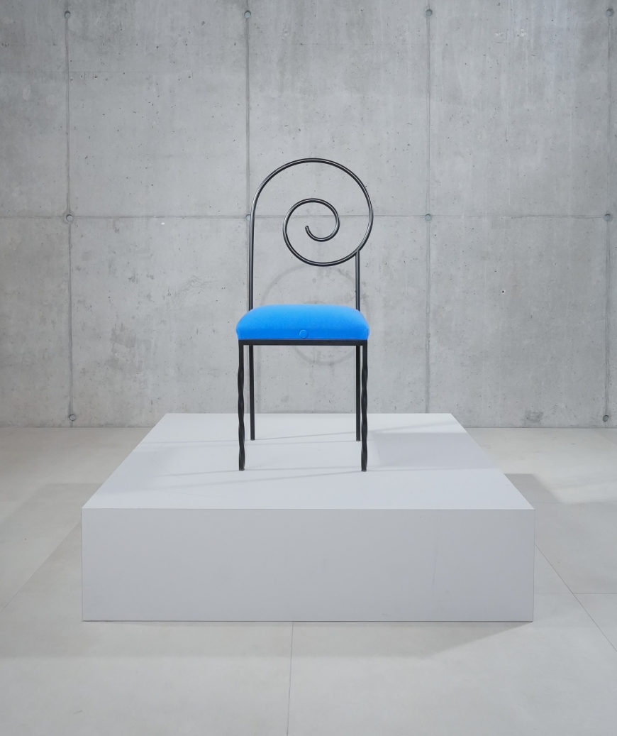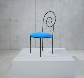De Suspiral-stoel, ontworpen door de Italiaanse kunstenaar en ontwerper Luigi Serafini, is een opvallend voorbeeld van postmodern design. Het ontwerp kenmerkt zich door een sculpturale, spiraalvormige rugleuning die visuele beweging en spanning oproept. De combinatie van een zwevende glazen zitting en gedraaide metalen poten maakt de stoel tot een expressief object dat zowel functioneel als artistiek is. De Suspiral is zeldzaam en geliefd bij verzamelaars van Italiaans design uit de jaren ’80.