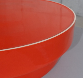 Fijn porcellanato / porcelainized grès met gepolijste glazuurlaag in oranje.