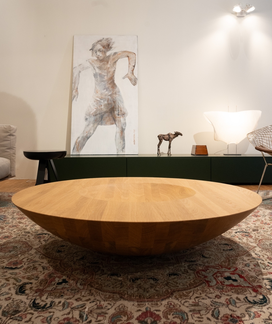 De Shell 1 tafel van Casimir in Solid European oak is een ontwerp dat speelt met perceptie en functie: het doet je even twijfelen of je naar een bord, een schaal of een tafel kijkt. Door te experimenteren met proportie, maat en schaal ontstaat een sculpturaal objet d’usage dat tegelijk elegant, vriendelijk en verrassend direct is.