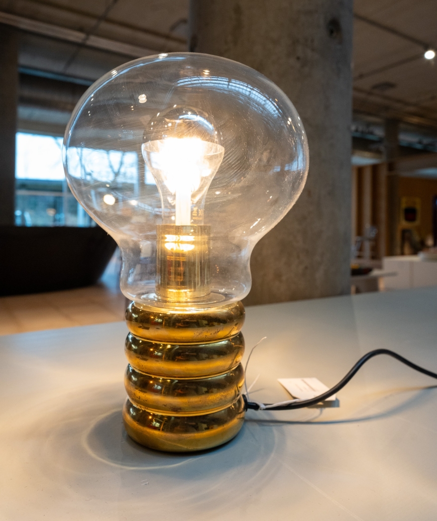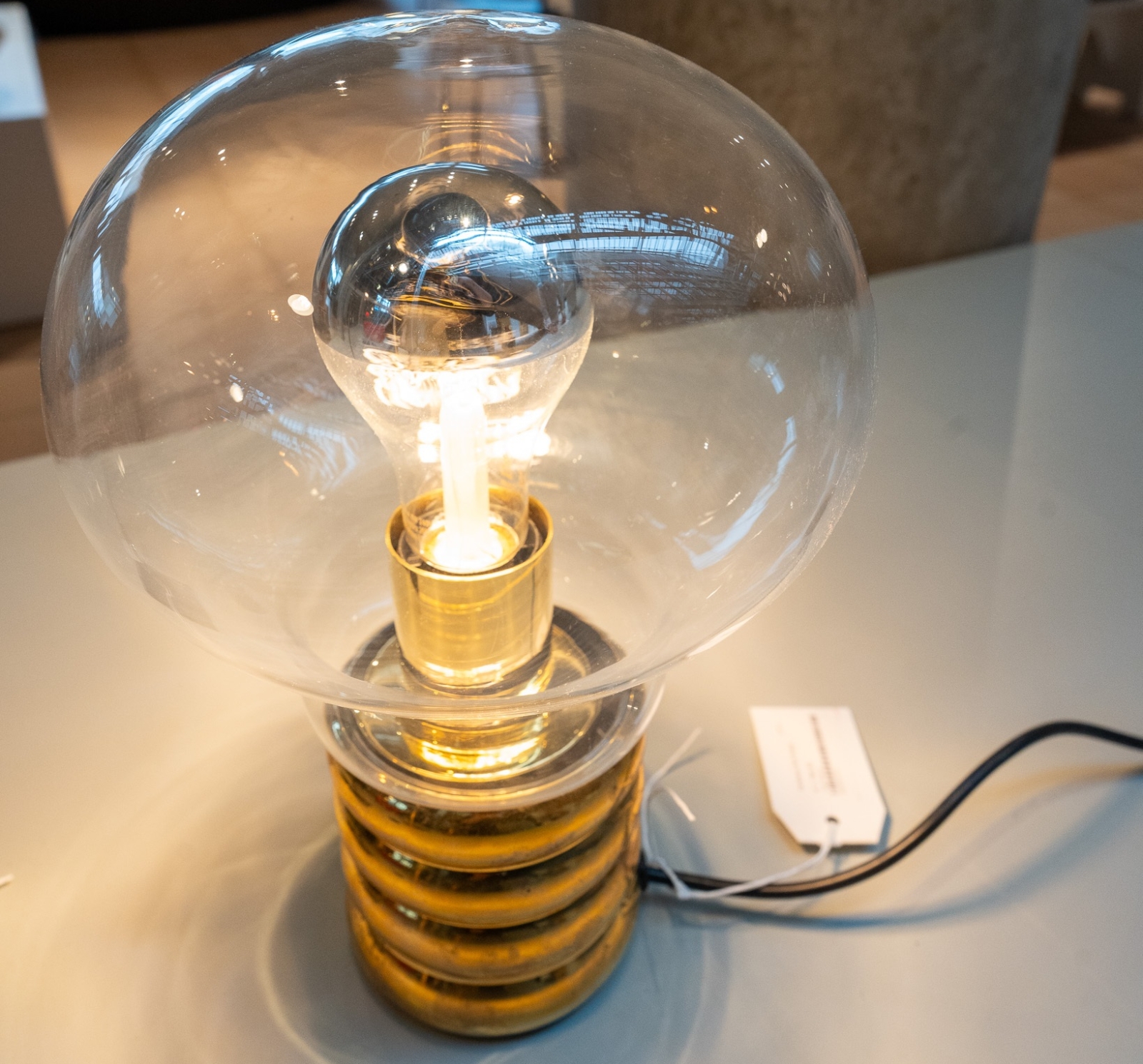 Ingo Maurer Bulb table lamp is een iconische tafel- of bijzetlamp uit de Bulb-familie van Ingo Maurer, een klassiek ontwerp uit 1966 dat nog steeds deel uitmaakt van de collectie. Deze versie combineert het oorspronkelijke concept met een hoogwaardige messing voet en een mondgeblazen Murano kristalglas kap.