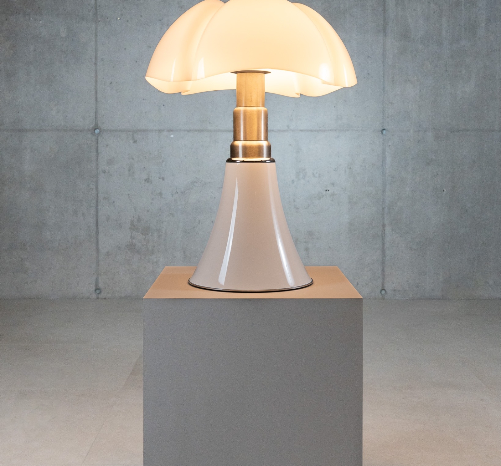 De Pipistrello‑lamp is een iconisch ontwerp van Gae Aulenti voor Martinelli Luce.