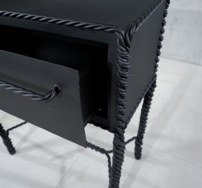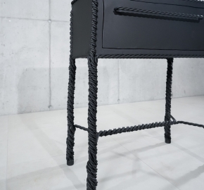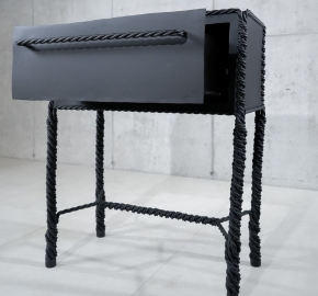Twisted Cabinet - IJzeren staven worden met de hand gedraaid, getwist en gebogen, waardoor een spel van interactie, spanning en kracht ontstaat. Elk stuk is uniek, gevormd door pure ambacht en de uitdaging van het materiaal.