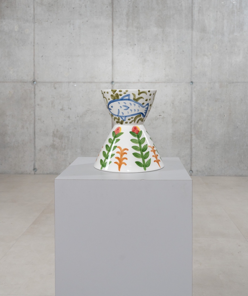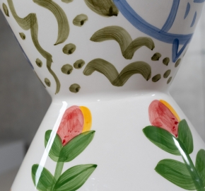 Deze vaas maakt deel uit van de Santiago de Borja collectie van Serax, ontworpen door Shirley Villavicencio Pizango. Het werk is geïnspireerd op de rijke kleuren en organische vormen van het Amazonegebied en combineert keramiek met expressieve, handgemaakte afwerkingen.