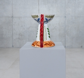 Vorm: sculpturale, volumineuze vaas met een sterke visuele aanwezigheid.