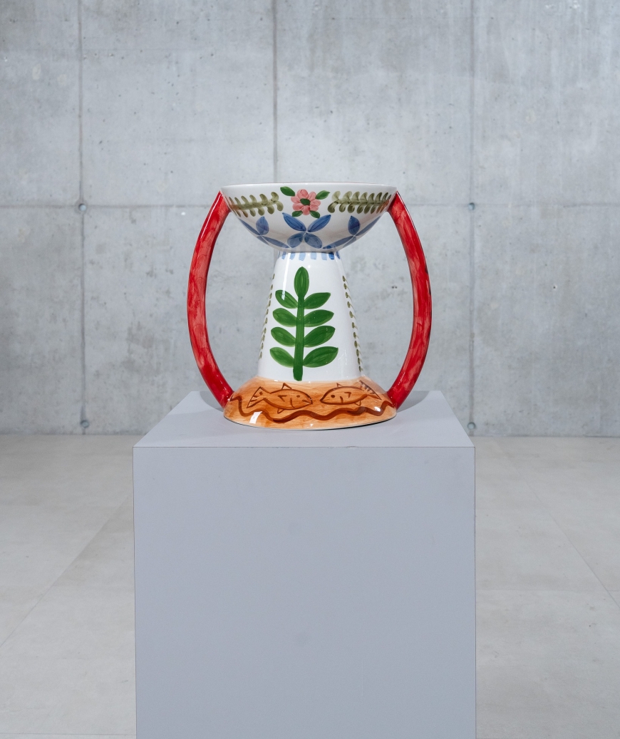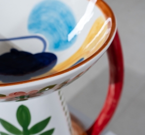 Deze vaas maakt deel uit van de Santiago de Borja-serie van Serax, ontworpen door Shirley Villavicencio Pizango. Haar inspiratie komt uit het Amazonegebied: krachtige kleuren en organische vormen staan centraal in de collectie.