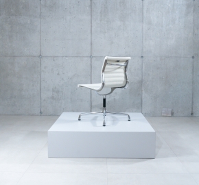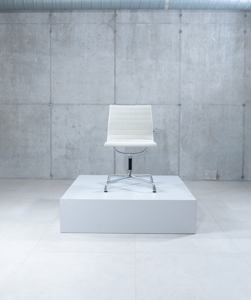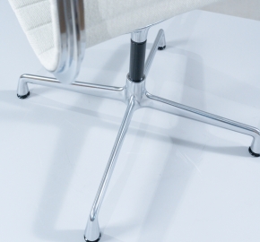 Charles en Ray Eames ontwierpen deze stijlvolle, armloze stoel al in 1958, oorspronkelijk voor gebruik buitenshuis. Toch bleek de stoel veel vaker binnen toegepast te worden. Iets wat goed paste in de designfilosofie van het echtpaar Eames, die liefst zagen dat een product zo breed mogelijk toepasbaar was. Al die tijd heeft de stoel zijn moderne uitstraling behouden. Dat komt allereerst door het industriële frame van spuitgietaluminium, maar ook door de slanke zitting. Deze kan bekleed worden met de stof Hopsak (100% polyamide), netweave of leder (premium).