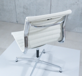 De Vitra Aluminium Chair EA 101 is een ontwerp van Charles en Ray Eames Deze eetkamerstoel wijkt af van de bureaustoelen uit de Aluminium Groep in de zin dat hij lichter en smaller is. De vormgeving van deze stoel is bijzonder, want met de Aluminium Chair week het echtpaar Eames voor het eerst af van een stoel met een organisch gevormde zitschaal. In plaats daarvan heeft de stoel een stalen frame, waartussen een lap stof of leer gespannen is. Doordat de zitting elastisch is, vormt deze zich naar uw lichaam. Hierdoor is de stoel extreem comfortabel, ondanks het feit dat de zitting geen binnenbekleding heeft.