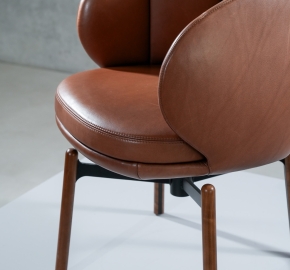 De Vuelta FD Chair is een elegante eetkamerstoel ontworpen door de Spaanse kunstenaar en ontwerper Jaime Hayon in samenwerking met het Oostenrijkse meubelmerk Wittmann. Het ontwerp combineert een eclectische, mediterrane barokstijl met tijdloze elegantie. De stoel heeft een comfortabele zitting met een pocketveringkern en een kenmerkende Vuelta-stikking. De gebogen rugleuning loopt subtiel over in geïntegreerde armleuningen, wat zowel esthetisch als functioneel is. De stoel is verkrijgbaar met vaste poten of een draaibare basis, en het frame kan worden afgewerkt in diverse kleuren, waaronder zwart, messing satijnmat of op maat gemaakte tinten.
