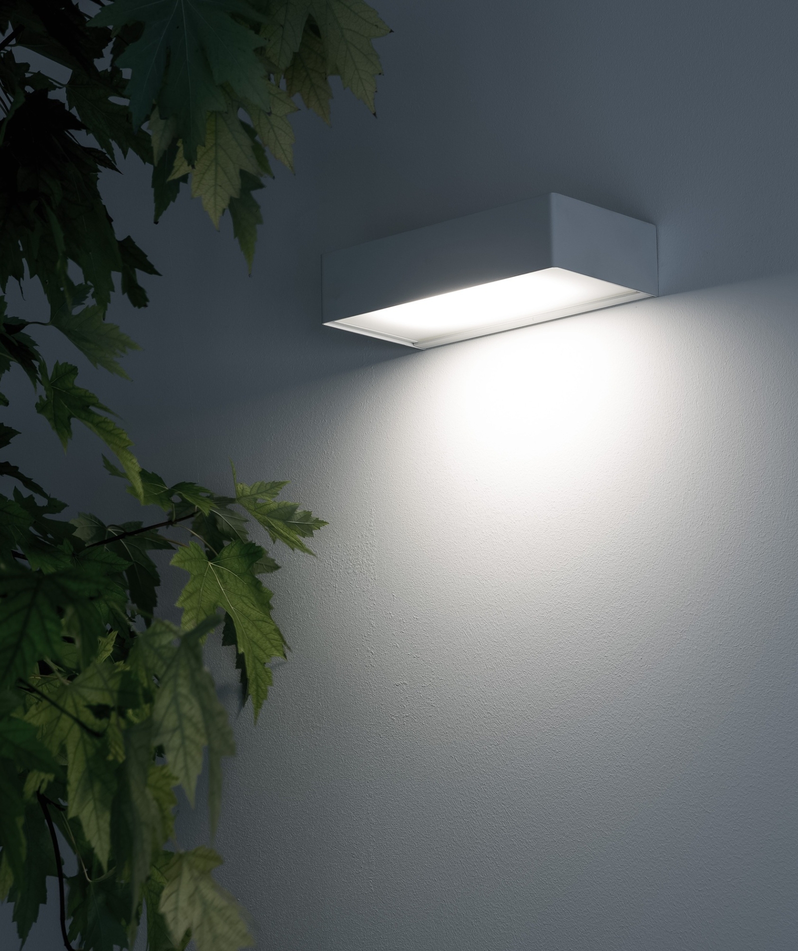 Deze mnimalistische wandlamp van Davide Groppi (2014) is officieel ontworpen voor buitengebruik. Het compacte armatuur bestaat uit een gevouwen metalen behuizing met een glazen diffuser en een geïntegreerde LED-lichtbron. De lamp verspreidt gericht, zacht licht naar beneden en wordt vaak toegepast bij entrees, gevels of terrassen. Dankzij de IP65-bescherming is het armatuur bestand tegen regen en stof, waardoor het geschikt is voor langdurig buitengebruik.