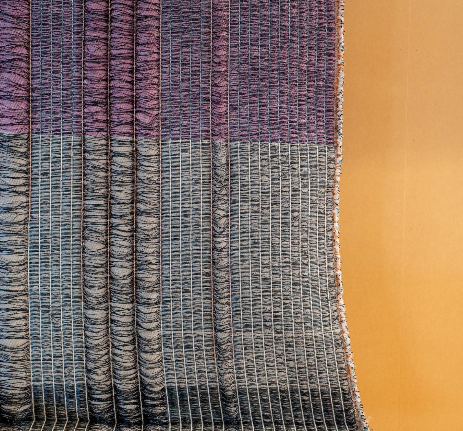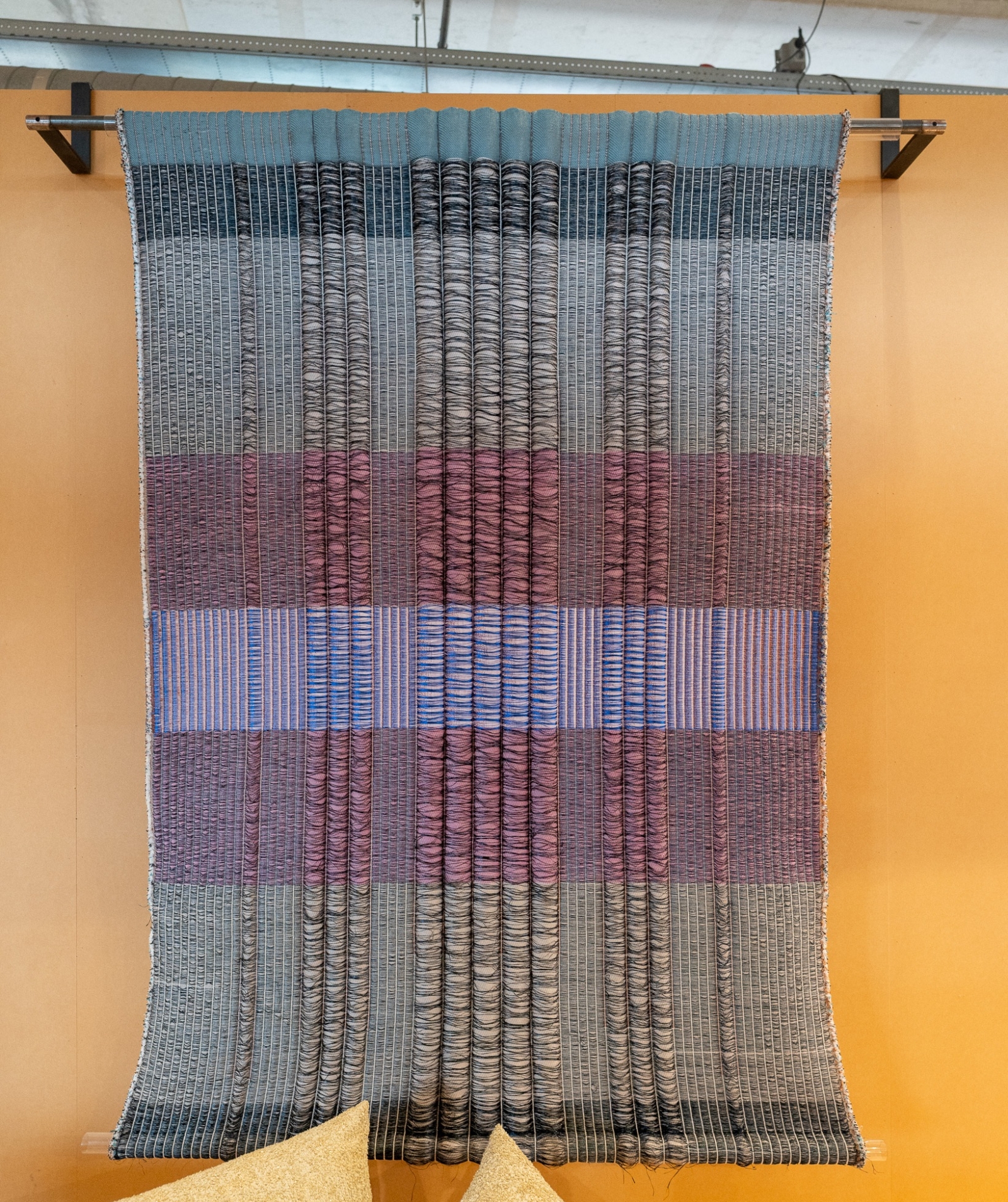 Het Wandpaneel Radiant van Mae Engelgeer is een textielkunstwerk waarin kleur, ritme en structuur samenkomen. Engelgeer staat bekend om haar grafische benadering van textiel, waarbij gelaagde kleurvlakken worden gecombineerd met subtiele materiaalcontrasten. In Radiant zie je dat terug in de horizontale banen en verticale lijnen die samen een krachtig maar gebalanceerd patroon vormen.
