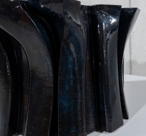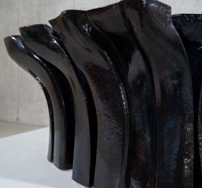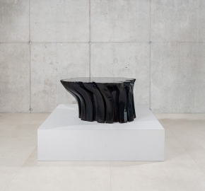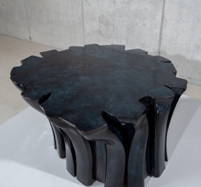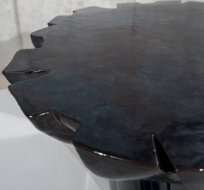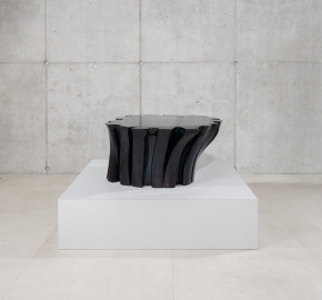 De Wonky Table van Floris Wubben is een subtiel monument in keramiek, een kunstobject dat tegelijk dienstdoet als functionele tafel. Door het traditionele extrusieproces los te laten, zet Wubben het materiaal aan het werk en laat hij de klei zijn eigen vorm vinden. Wat ontstaat is een organisch object met ritmische golving en onverwachte randen. Het is een poëtisch resultaat van een wisselwerking tussen precisie en spontaniteit.