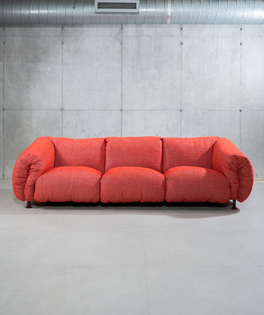 De Za:Za bank van Zanotta, ontworpen door het Venetiaanse duo Zaven, combineert stijlvol design met uitzonderlijk comfort. Het monoblockontwerp rust op een slank, buisvormig stalen frame, verkrijgbaar in kleuren zoals oranje, amarant, grasgroen of zwart. De zit-, rug- en armleuningkussens zijn gevuld met polyurethaan en geregenereerde, herbruikbare polyester bolletjes, en zijn vrij van lijm voor een milieuvriendelijke samenstelling. De afneembare stoffen bekleding vergemakkelijkt het onderhoud en biedt flexibiliteit in uitstraling. Met zijn uitnodigende en omhullende vormen is de Za:Za bank een elegante toevoeging aan elk interieur.