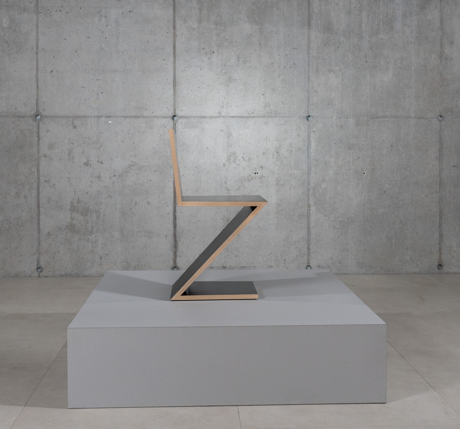 De Zig-Zag stoel van Cassina is een iconisch ontwerp van Gerrit Thomas Rietveld. De stoel is radicaal simpel én extreem expressief: in plaats van traditionele poten, zitting en rug, bestaat de Zig-Zag uit vier houten panelen die in een omgekeerde “Z”-vorm aan elkaar zijn verbonden, waardoor een vloeiende, continue lijn ontstaat.