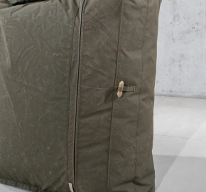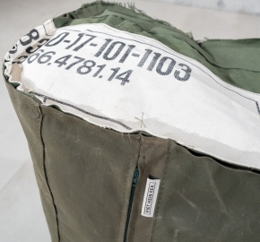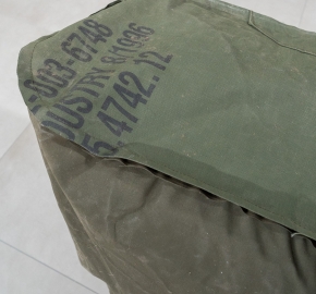 Bekleding: hergebruikte legertentstof. Waterbestendig, slijtvast en geschikt voor buitengebruik